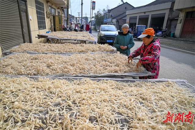 The photo, taken on January 5, shows villagers drying handmade buckwheat bean curd sheets at Hongyang Village, Yanjing Town, Lixian County. Every winter, locals have the tradition to make buckwheat bean curd sheets, which serve both as daily fare and as a treat for guests. As the Spring Festival approaches, numerous workshops and villagers have begun producing buckwheat bean curd sheets, turning this smooth, chewy, and nutritious local specialty into the warmest festive flavor in people's memories. Currently handmade buckwheat bean curd sheets not only evoke a sense of nostalgia, but have also developed into a distinctive industry that boosts farmers' income. (Photo/Guo Lilaing, Hunan Daily)