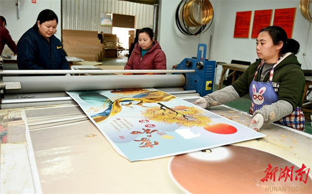 The photo shows workers producing decorative pictures at Huangqiao Town, Dongkou County. Recently, decorative painting enterprises have been ramping up production to fulfill orders for the upcoming Spring Festival, with the aim of ensuring stable market supply. (Photo/Teng Zhizhong)