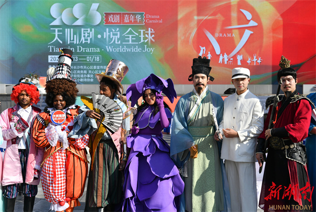 On January 13, performers and international students dressed as characters of various classic Chinese and foreign plays participated in a parade at the central plaza of Huangxing Road Pedestrian Street in Tianxin District, Changsha. That day marked the opening of the "Tianxin Drama - Worldwide Joy" Drama Carnival. Using drama as its theme, the event comprehensively promotes the unique features and high-quality performances of Tianxin's small theaters. It aims to establish Hunan's first small theater cluster, creating a new cultural landmark that integrates performances, interactions, and photo taking, while continuously enhancing the appeal of the "Joy" culture. (Photo/Tian Chao, Hunan Daily)