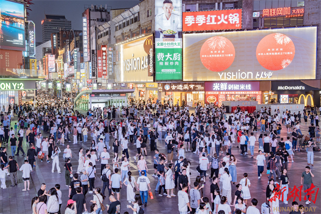A hustle and bustle scene at the Wuyi Square business area. (Photo/Li Jian)