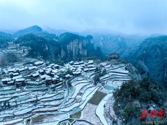 Dahan, or Major Cold, the final chapter of the 24 solar terms on the Chinese lunar calendar, fell on January 20 this year. On that day, Jidou Miao Village in Aizhai Town, Jishou City witnessed its first snowfall of this year, presenting a picturesque scenery. (Photo/Peng Jing)