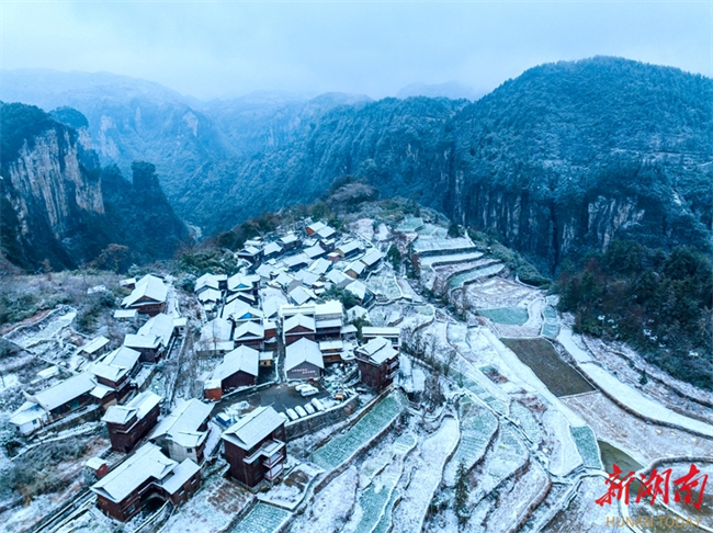 Dahan, or Major Cold, the final chapter of the 24 solar terms on the Chinese lunar calendar, fell on January 20 this year. On that day, Jidou Miao Village in Aizhai Town, Jishou City witnessed its first snowfall of this year, presenting a picturesque scenery.(Photo/Peng Jing)