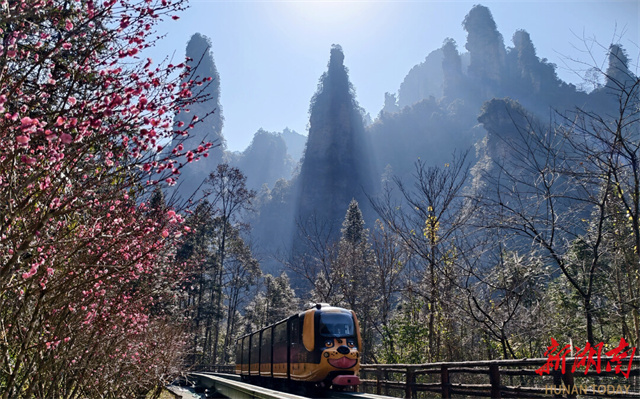 Over 3,000 winter plum and spring cherry blossom trees are planted along the Ten-Mile Gallery, currently entering their peak viewing period. Red plum blossoms blaze like fire, while pink blossoms resemble dawn clouds. These vibrant blooms harmonize with Zhangjiajie's iconic quartz sandstone peaks, creating a breathtaking scene where "warm sunlight illuminates red plum blossoms, while towering peaks immersed in subtle fragrance." Huangshizhai Plum Garden features over 5,000 plum trees of various varieties stretching 1.5 kilometers.