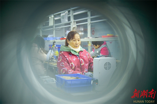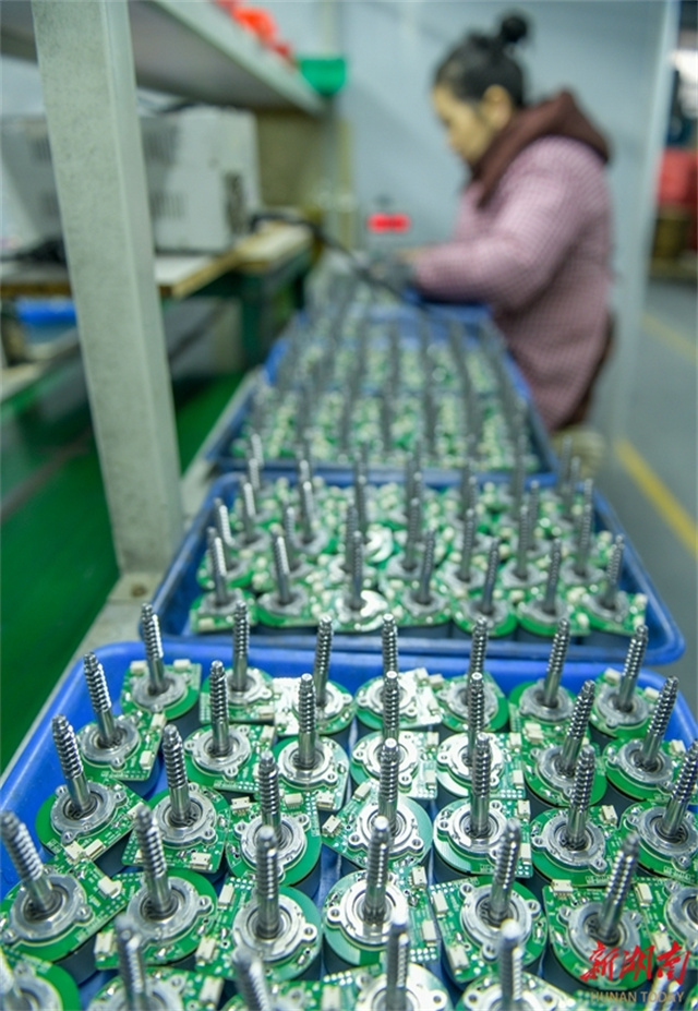 The photo shows a worker assembling small motors on the production line at a company in Daoxian County. In recent years, the county authority has vigorously developed its small electric motor manufacturing industry, establishing stable partnerships with domestic and international manufacturers to achieve robust production and sales. (Photo/Jiang Keqing)
