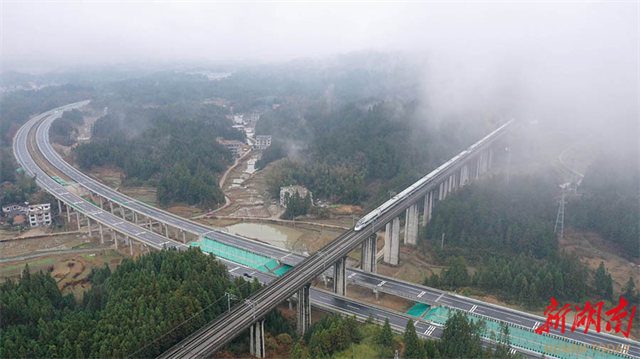 On January 26, the Xinhua to Xinning section of the G59 Huhhot-Beihai Expressway officially opened to traffic. Spanning 192.3 kilometers, with a design speed of 100-120 kilometers per hour, the Xinhua-Xinning Expressway runs from Xinhua County in Loudi City in the north to Xinning County in Shaoyang City in the south, passing through Longhui County and Wugang City. Its completion and opening to traffic will reduce the travel time between central and southwestern Hunan from approximately six hours to around two hours, significantly improving regional transportation conditions. This will inject new vitality into Hunan's connection with the Guangdong-Hong Kong-Macao Greater Bay Area and promoting cultural tourism and economic growth along the route. (Photo/Zeng Yong and Sun Zhongkun)