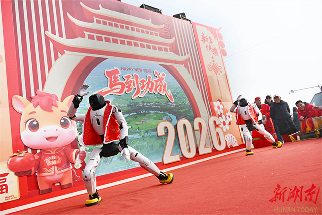 On January 28, people watched a robot dance performance during the Sixth "Lizhou Delicacies" New Year Fair and the Third Lizhou Confucius Temple Fair in Lixian County. This New Year event, blending technology with traditional culture, added a touch of modern artistic charm to traditional temple fair. (Photo/Bai Yipu and Wang Limei)