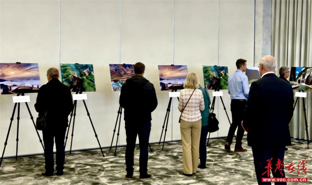 Attendees admire photos displaying Hunan's cultural tourism resources. (Photo provided by the Hunan Provincial Department of Culture and Tourism)
