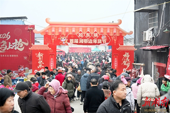 The photo, taken on February 4, shows villagers shopping for New Year goods during a shopping festival in Yangjiadang Village, Rudong Town, Lixian County. As the Spring Festival approaches, the town hosted its inaugural Hunan-Hubei Border Area New Year Goods Festival and a mass performance event. By leveraging cultural activities to stimulate the trade of New Year goods, the event attracted numerous villagers from both the local area and neighboring Nanping Town in Gong'an County, Hubei Province. (Photo/Bai Yipu and Wang Ming)