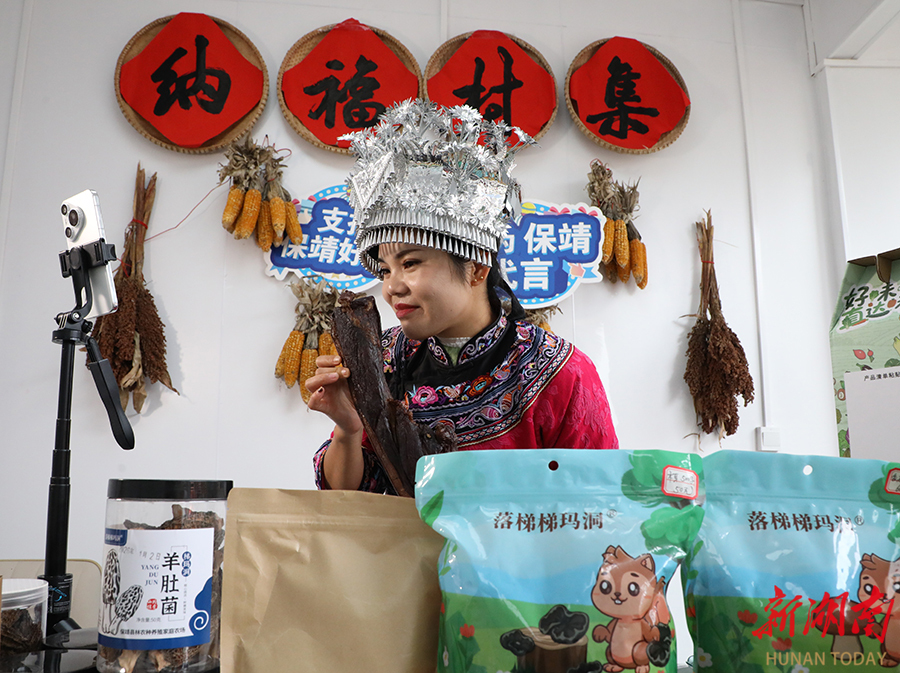 With the Chinese New Year approaching, the county authority organized a Spring Festival market and invited live-streamers to host livestream sessions, promoting traditional New Year goods such as perserved meat, sausages, and ciba (a delicious round-shaped glutinous rice cake). This initiative aimed to stimulate the festive economy and boost farmers' income. (Photo/Yu Caihua)