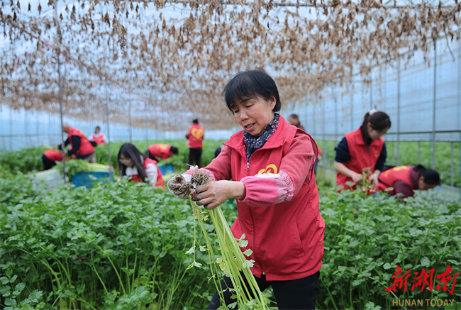 The photo, taken on February 27, shows members of a volunteer association in Guidong County assisting in harvesting vegetables at an agriculture company. Their participation helped ensure timely agro-product supply to the Guangdong-Hong Kong-Macao Greater Bay Area, and contributed to local rural revitalization. (Photo/Deng Renxiang)
