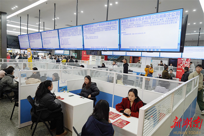 On February 27, the 2026 Spring Breeze Campaign Job Fair, hosted by the Changsha Municipal Human Resources and Social Security Bureau, was held at the Changsha Human Resources Market. The job fair brought together 46 high-quality enterprises, offering 2,630 job openings across such sectors as manufacturing, services, and real estate. The initiative helped establish an efficient matchmaking platform for job seekers of various backgrounds. (Photo/Xu Xing, Hunan Daily)