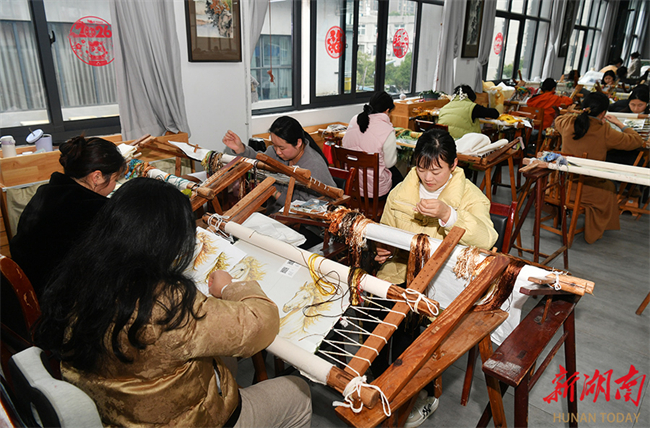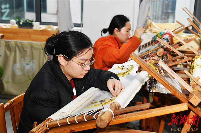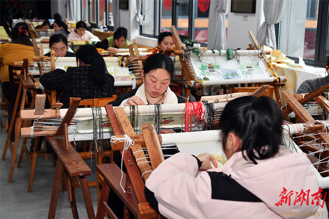 On February 28, embroiderers were busy fulfilling Spring Festival orders at a workshop of the Hunan Xiang Embroidery Research Institute. After the Spring Festival holiday, the institute has resumed full operations, dedicating its efforts to producing business gifts, cultural and creative products, and new Chinese-style apparel. Last year, its products were showcased at 37 domestic and international exhibitions, introducing 45 new Chinese-style Xiang embroidery garments. Multiple works won awards and were selected as the intangible cultural heritage licensed merchandise for the 15th National Games. (Photo/Tian Chao, Hunan Daily)