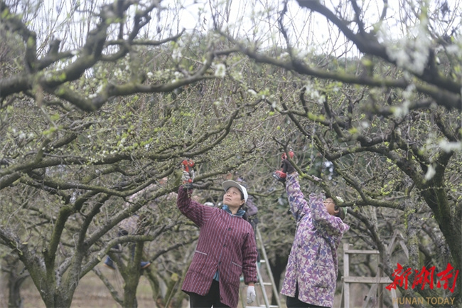 The photo, taken on March 2, shows fruit growers pruning branches at an orchard in Daoxian County. Currently, it is the critical time for fruit tree management. The county authority has organized fruit growers to carry out spring farming, laying a solid foundation for a bumper fruit harvest throughout the year. (Photo/Jiang Keqing)
