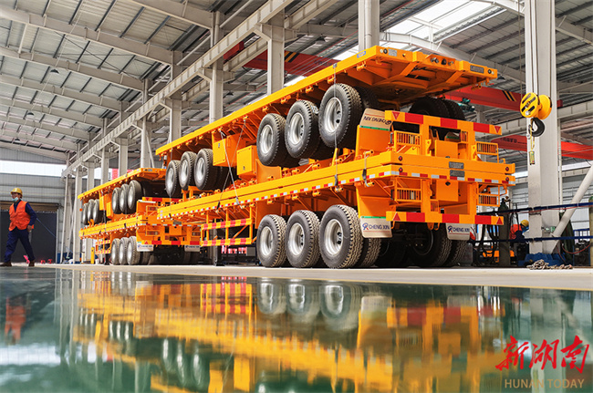 On March 13, a total of 51 vehicles produced by Hunan Chengxin Special Purpose Vehicle Co., Ltd. departed from Jiahe County High-Tech Industrial Development Zone for Africa and Southeast Asia. The vehicles included four-axle self-dumping semitrailers and lightweight semitrailers. In recent years, the county authority has implemented the strategy of "building itself into a leading industrial county." Efforts have been made to vigorously expand into emerging overseas markets, supporting enterprises in capacity expansion and upgrading, product R&D, as well as market development, and promoting "Made-in-Jiahe" products to integrate into the global industrial chain. (Photo/Huang Chuntao)