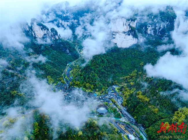 On March 18, the Aizhai Wonder Scenic Area is shrouded in clouds and