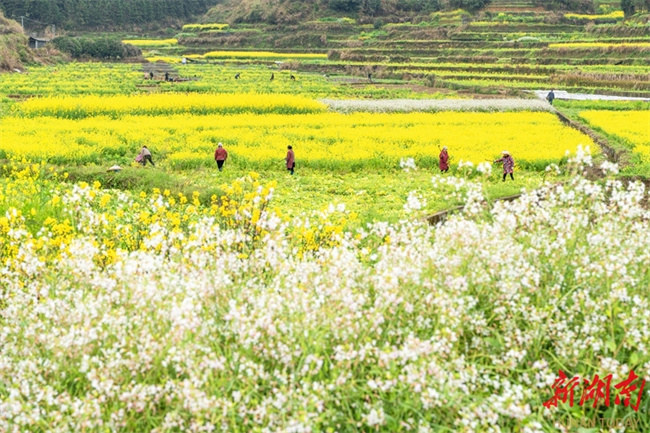 The photo, taken on March 19, shows villagers working in the fields at Shuangtang Village, Shangtang Neighborhood, Jishou City. Spring Equinox, or Chunfen, the fourth solar term in the Chinese lunar calendar, begins on March 20 this year. During this period, farmers across the province are seizing the favorable farming season to engage in agricultural activities, presenting a vibrant picture of farming scene. (Photo/Liang Yonghong)