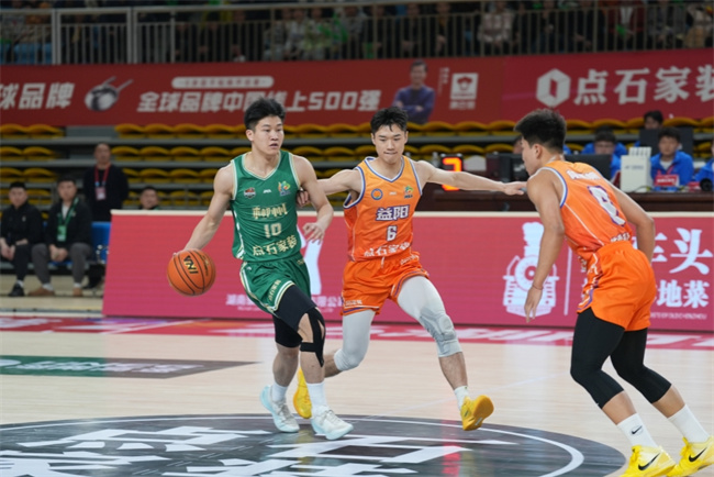 On the evening of March 29, the Chenzhou team (in green) defeated the Yiyang team with a score of 85–67 on its home court, kicking off the new season with a victory. (Photo/Cao Gaolin)