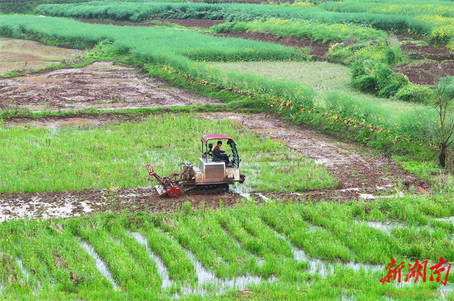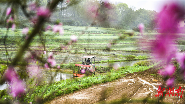 The photo, taken on March 30, shows farmers operating agricultural machines to transplant early-season rice seedlings at Bali Village in Shanglingqiao Town, Yongzhou City. As temperatures gradually rise, farmers across the province are seizing the farming season to engage in spring farming, presenting a vibrant scene in the fields. (Photo/Lei Zhongxiang and Jiang Lingzhi)