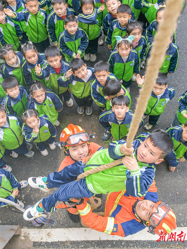 firefighters. That day marked China's national safety education day for middle and primary school students. The Daoxian County Fire and Rescue Brigade invited students from Daoxian County No. 4 Primary School to visit the fire station and participate in safety education activities, aiming to enhance their safety awareness and self-protection skills. (Photo/Jiang Keqing and Wen Tian)