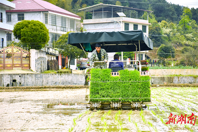 On April 5, farmers transplant early-season rice seedlings with an agricultural machine in Shaping Village, Sangesi Town, Longhui County. As the Qingming solar term has begun, local farmers are seizing the time to carry out spring ploughing, laying a foundation for a bumper harvest of crops. Qingming, or Pure Brightness, the fourth of the 24 solar terms on the Chinese lunar calendar, begins on April 5 this year. (Photo/Xu Shanhai)