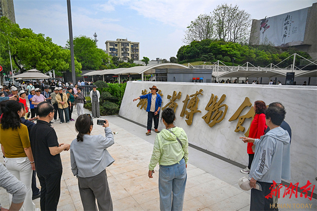 On April 9, visitors took photos in front of the newly-constructed cultural landmark stone of the Hunan Museum. Currently, the "museum-park integration" project linking the Hunan Museum and Hunan Martyrs Park is nearing completion. Launched in last June, the project covers an area of 29,000 square meters, centering on the idea of "museum plus park." The efforts aim to achieve museum-park integrated development through unified construction. The initiative boasts "integration of spaces, resources, and business formats and traffic circulation." The project connects the Hunan Museum with the Hunan Martyrs Park, comprehensively upgrading the facilities to create a seamless transition between cultural and natural landscapes. (Photo/Guo Liliang, Hunan Daily)