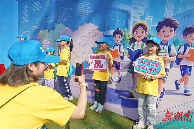 The 2026 Changsha (Spring) Children's Walking Competition, hosted by Hunan Daily, kicked off on the morning of April 26. Under the theme of "Walking into the Book of Changsha," 3,500 families set off from Yazui Park, and walked along the Liuyang River to the Longping Rice Museum. The participants passed by Mawangdui Square, Hanqiao Bridge spanning over the Liuyang River, among other iconic places along the route, experiencing the cultural charm of Changsha City through physical activity. The photo shows children taking photos with the competition poster on that day. (Photo/Xu Xing, Hunan Daily)