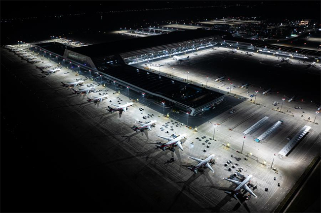 This photo taken on July 11, 2025 shows a view of the apron at Ezhou Huahu International Airport in Ezhou, central China's Hubei Province. (Xinhua/Xiao Yijiu)