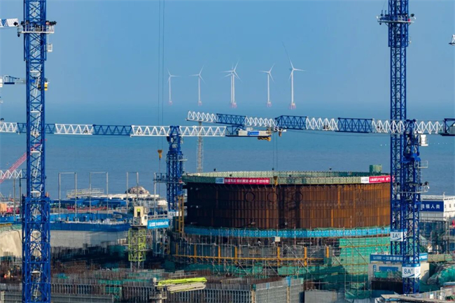 The construction site of the Jinqimen nuclear power project in Xiangshan county, Ningbo, east China's Zhejiang Province, Dec. 15, 2025. (Photo/Zhang Yongtao)