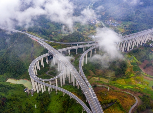 Expressways Pass Through Mist-shrouded Valleys and Mountains