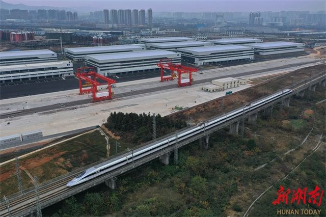The photo, taken on December 7, shows the multimodal transport dedicated railway line at Huaihua International Land Port undergoing commissioning. This dedicated railway line serves as a vital link connecting the port's Less Than Container Load (LCL) Center and the West Freight Yard, facilitating the micro-circulation of regional rail transport network. (Photo/Chai Junlin)
