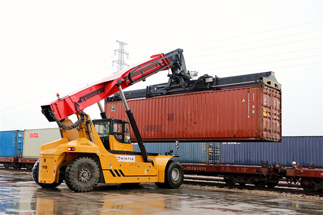 The freight train service features Zhuzhou as its primary hub, with Hengyang and Chenzhou serving as secondary hubs. Foreign trade goods from Hunan and China's central and western regions are gathered here, transported by rail to ports in the Guangdong-Hong Kong-Macao Greater Bay Area, and then shipped globally by sea. In 2025, a total of 58,299 containers were handled via the Hunan-Guangdong-Africa freight train service, a 23.9% year-on-year increase, with cargo value rising by 17.28%. (Photo/Meng Xianglin)