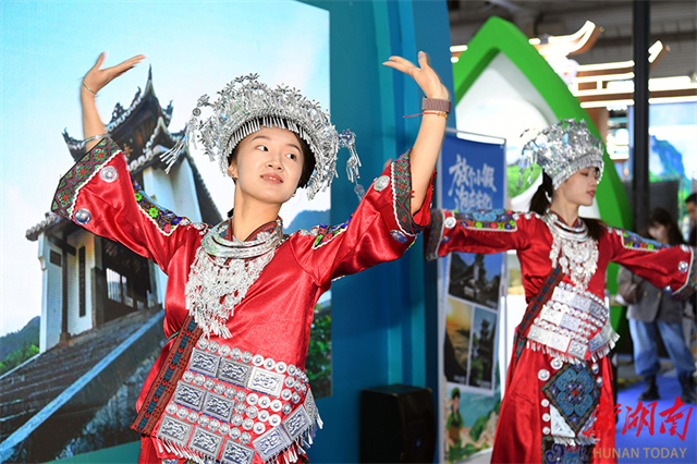 The 2025 Hunan Cultural Tourism Industry Expo and the 1st December 12th Cultural Tourism Shopping Festival concluded on December 14. This year's expo integrated exhibitions, transactions, and experiential activities, showcasing achievements in "cultural tourism + technology" integration. During the closing ceremony, trade data from the expo was released, and awards were presented to organizations and individuals who excelled in competitions such as the Hunan Cultural Tourism Commodities Competition and the First Healthy Hunan Cuisine Culinary Competition for Famous Restaurants and Chefs of Hunan Province. The photo shows performers staging folk dance. (Photo/Tian Chao and Hu Xueyi, Hunan Daily)
