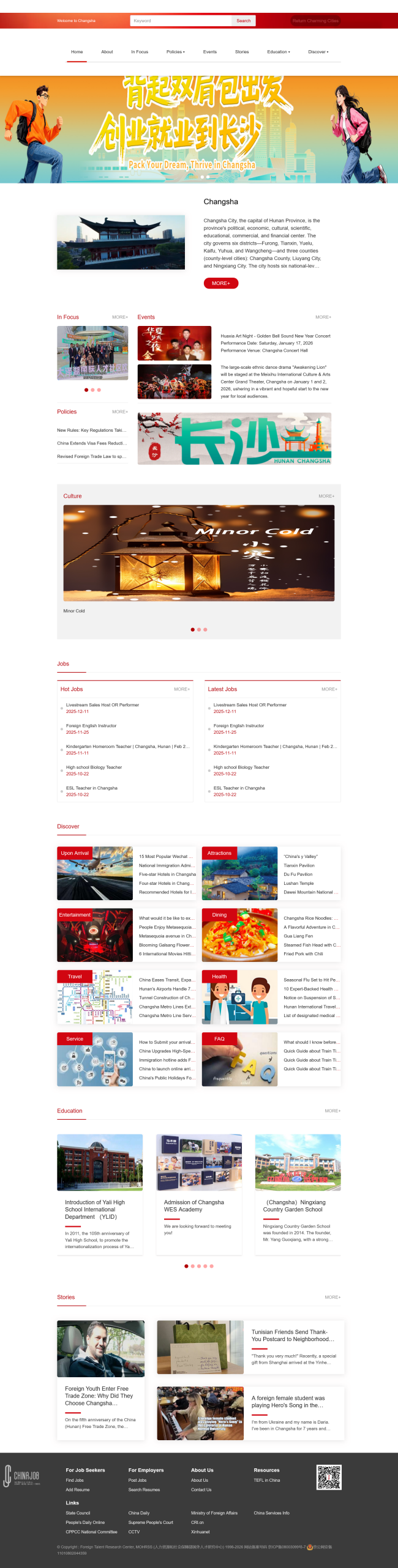 On January 5, 2026, a "Charming Changsha" channel was officially launched on the China International Service Platform, China's only national-level, all-English comprehensive platform for international professionals. The channel will serve as an online service center for foreign talents in Changsha. Through dedicated sections showcasing the city's urban landscape, providing authoritative policy interpretations, sharing daily-life information, and facilitating job-market matchmaking, the channel aims to encourage more professionals to choose Changsha, build their careers, and shape the future.