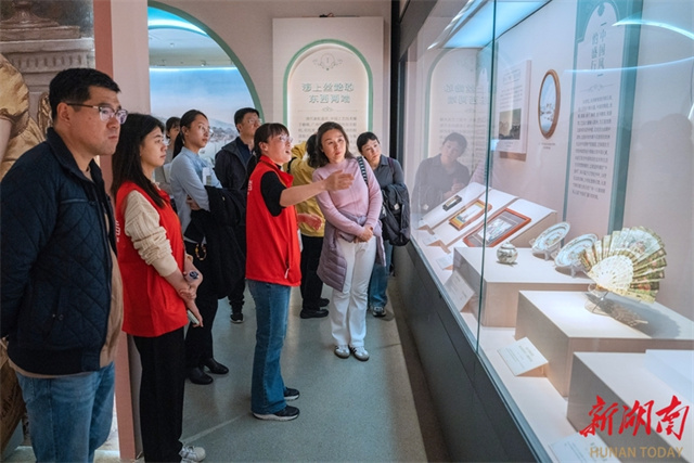A special exhibition titled "Sailing Overseas-- Exhibition of Exquisite Qing Dynasty Export Artifacts Collected by the Dongguan Museum" opened at the Changsha Museum on November 11. The exhibition features over 150 fine export artworks that blend traditional Chinese craftsmanship with Western aesthetics, including Guangzhou painted porcelain, export fans, lacquerware, and silverware. It vividly recreates the brilliant history of Sino-Western trade and cultural exchanges from the 18th to the 19th century, inviting visitors to a transoceanic dialogue among civilizations. (Photo/Li Jian, Hunan Daily)