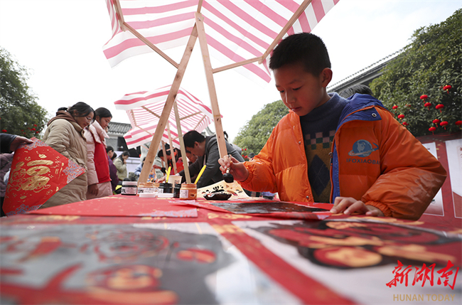 A series of folk custom activities were held in Zixing, Chenzhou, on February 10. People tried their hands at a variety of traditional handicrafts such as making ciba, a round-shaped glutinous rice cake, and making lacquer fans, immersing themselves in the charm of intangible culture heritage and intense festive atmosphere. The photo shows students trying out traditional rubbing techniques at the Wuling Farming Culture Museum in Zixing City. (Photo/Li Ke and He Honghai)