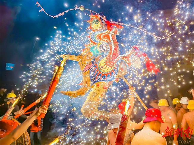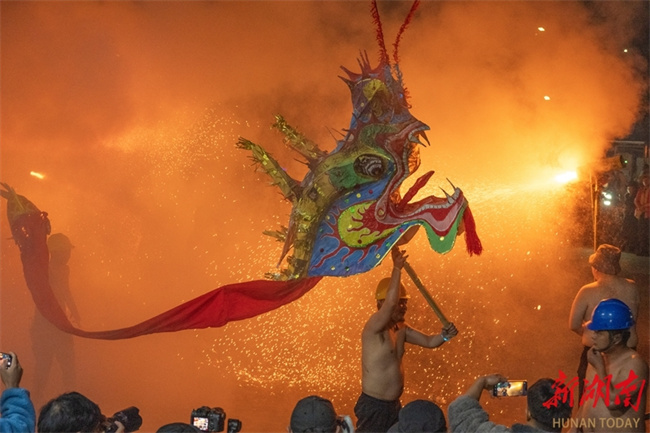 On the evening of March 1, folk artists performed a steel fire dragon dance in Majing'ao Town, Jishou City, creating a bustling atmosphere. With a history of over 300 years, the steel fire dragon dance is a traditional folk activity of the Miao ethnic group. In 2021, the Xiangxi steel fire dragon dance was included in the fifth batch of the provincial-level intangible cultural heritage representative list. (Photo/Long Enze)