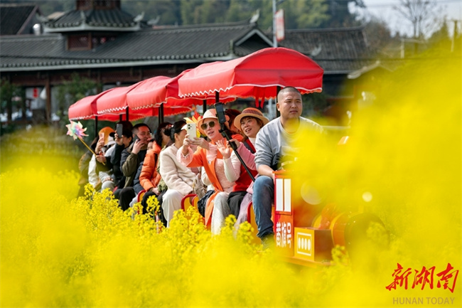 The photo, taken on March 5, shows tourists riding a sightseeing train through a sea of canola flowers at a scenic spot in Baozhi Town, Huitong County. That day marked the begining of "Jingzhe" or "Awakening of Insects," the third of the 24 solar terms on the Chinese lunar calendar. During this period, canola flowers, tulips, violets, and other spring blooms burst into vibrant colors, drawing crowds of visitors to admire the blossoms, take photos, and immerse in the vibrant spring atmosphere. (Photo/Zhang Lei)