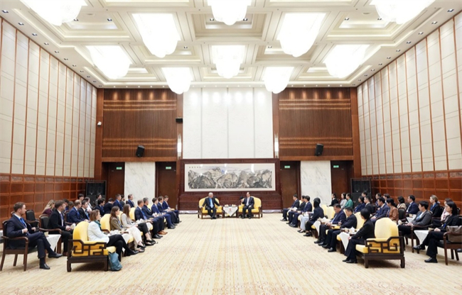 On the afternoon of April 24, Mao Weiming, deputy secretary of the CPC Hunan Provincial Committee and governor of the People's Government of Hunan Province, met in Changsha with a delegation led by Hans Albrecht, chairperson of the Board of Global Bridges, and Wu Ken, president of the Chinese People's Institute of Foreign Affairs. The guests came to Changsha to attend the 11th China-Germany Young Leaders Conference.