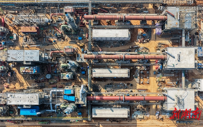 Workers are busy installing equipment and setting up factory buildings at the construction site of a lithium carbonate project of a lithium polymetallic new materials company in Gongba Town, Daoxian County on October 11. With an annual production capacity of 60,000-tonne lithium carbonate, this project has entered the crunch time for equipment installation and plant construction. The workers are racing against the clock to secure construction progress, laying a solid foundation for commissioning test run and production. (Photo/Jiang Keqing)