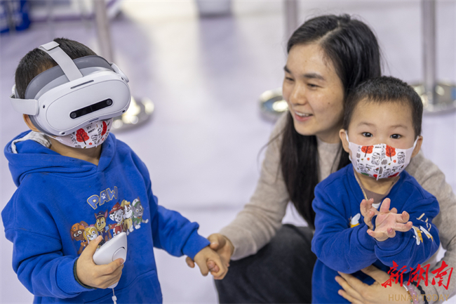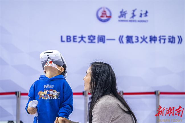 A kid experiences a LBE space at the 2025 China New Media Technology Exhibition (CMTE) at the Hunan International Convention and Exhibition Center (Mango Hall) on November 13. The exhibition is ongoing in Changsha, focusing on technology empowering the media throughout its entire workflow and across all aspects. It featured three core sections—"New Ecosystem of Intelligent Media," "New Application of Smart Media Technologies," and "New Consumption of Digital Cultural Innovation." The event aims to create a platform to showcase the achievements in technological innovations empowering systematic transformation of mainstream media, and to facilitate technology transactions and industrial collaboration. (Photo/Tong Zhenxi and Liu Shiqi, Hunan Daily)