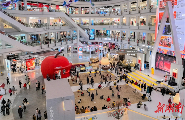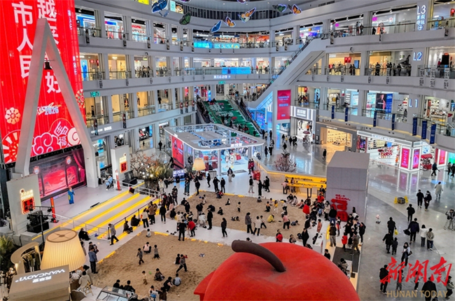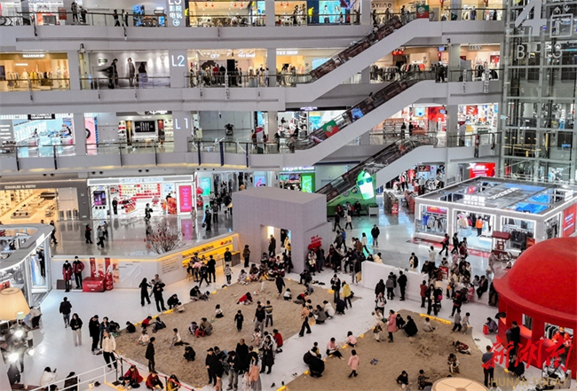 On February 23, residents enjoyed cultural performances while shopping at the Sasseur (Changsha) Outlets in Wangcheng District, Changsha. During the Spring Festival holiday, major commercial areas across Changsha ignited a surge in New Year spending through vibrant events, festive decorations, and promotional offers. (Photo/Li Jian, Hunan Daily)