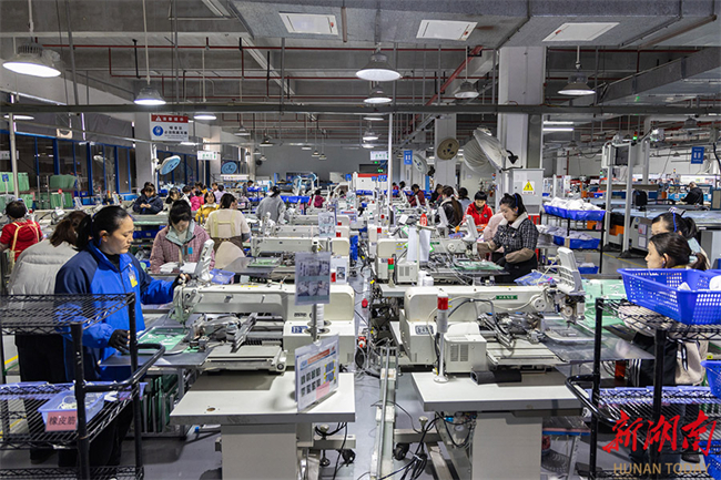 The photo, taken on February 25, shows workers busy producing gym shoes at a sporting goods company in Lengshuitan District, Yongzhou. All enterprises in the district have resumed production after the Spring Festival holiday. Factories are operating at full capacity to accelerate production and ensure order fulfillment, aiming to get off to a good start in the first quarter. (Photo/Lei Zhongxiang and Jiang Lingzhi)