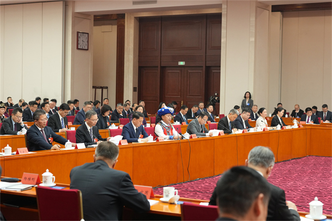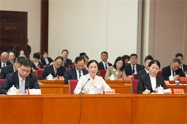 On March 5, Yuan Aiping (1st R), a Hunan-based member of the CPPCC National Committee, made a speech at a group discussion.