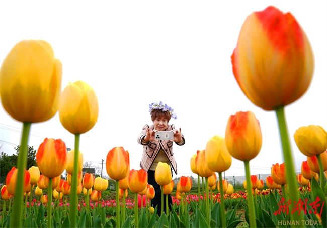 The photo, taken on March 5, shows people taking photos of tulip flowers at Jiaoshan Town, Shigu District, Hengyang City. That day marked the begining of "Jingzhe" or "Awakening of Insects," the third of the 24 solar terms on the Chinese lunar calendar. During this period, canola flowers, tulips, violets, and other spring blooms burst into vibrant colors, drawing crowds of visitors to admire the blossoms, take photos, and immerse in the vibrant spring atmosphere. (Photo/Cao Zhengping and Chen Yi)