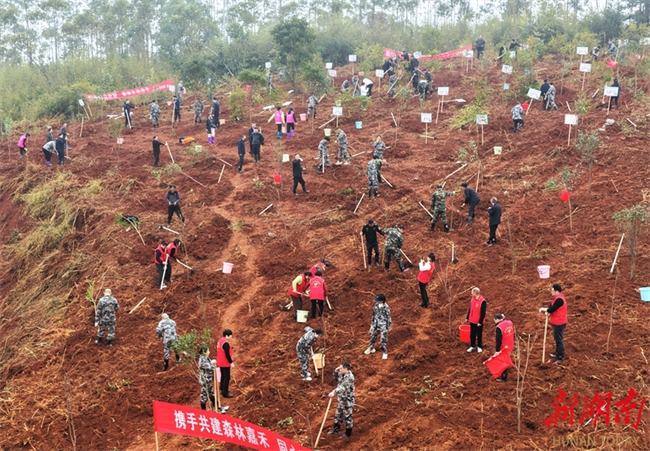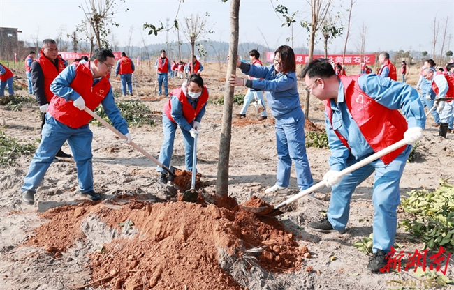 On March 11, the SINOPEC Hunan Company joins hands with Yueyang's Yunxi District to launch a voluntary tree-planting activity at the New Port section of Luchengyuan Embankment along the Yangtze River shoreline, aiming to enhance the beauty of the Yangtze riverbanks together. March 12 marks China's National Tree Planting Day. Voluntary tree-planting activities are being held across the province, to increase green coverage, boost ecological protection, and jointly build a beautiful homeland. (Photo/Peng Zhan and Li Yijun)