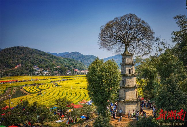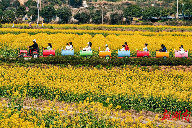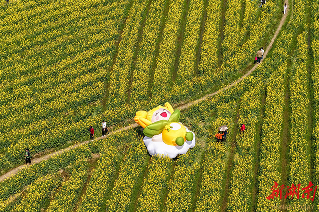 On March 14, the 10,000 mu (667 ha.) of canola flower fields in Chating Town, Wangcheng District, Changsha, entered their peak blooming period, attracting numerous visitors to enjoy the blossoms on a spring outing. In recent years, the town authority has created expansive floral landscapes through large-scale cultivation and organized accompanying events such as fun runs and concerts, to promote the integrated development of agriculture and tourism. (Photo/Tong Di, Hunan Daily)