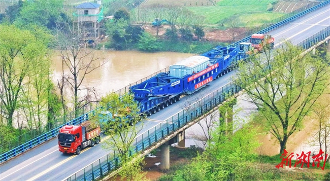 After an arduous journey, the second main transformer for the expansion project of the Changsha 1,000 kV UHV substation arrived in Changsha County at 13:00 on April 1. This transformer is a core component of the national key power transmission project which aims at improving a "日"-shaped UHV AC ring network in Central China. This transformer was carried by a "behemoth" tractor-trailer, together weighing 445 tonnes. The tractor-trailer measured 100 meters in length, 5.224 meters in width, and 4.95 meters in height, featuring 42 axles and 276 wheels. It was trailed by two tractors with over 600 horsepower, one pulling from the front and the other pushing from the rear. The entire journey was escorted by the Changsha Municipal Transportation Bureau and organized by the Changsha Transportation Comprehensive Law Enforcement Detachment. The journey started from Hengyang on March 30. (Photo/Xu Xing and Chen Yihong, Hunan Daily)