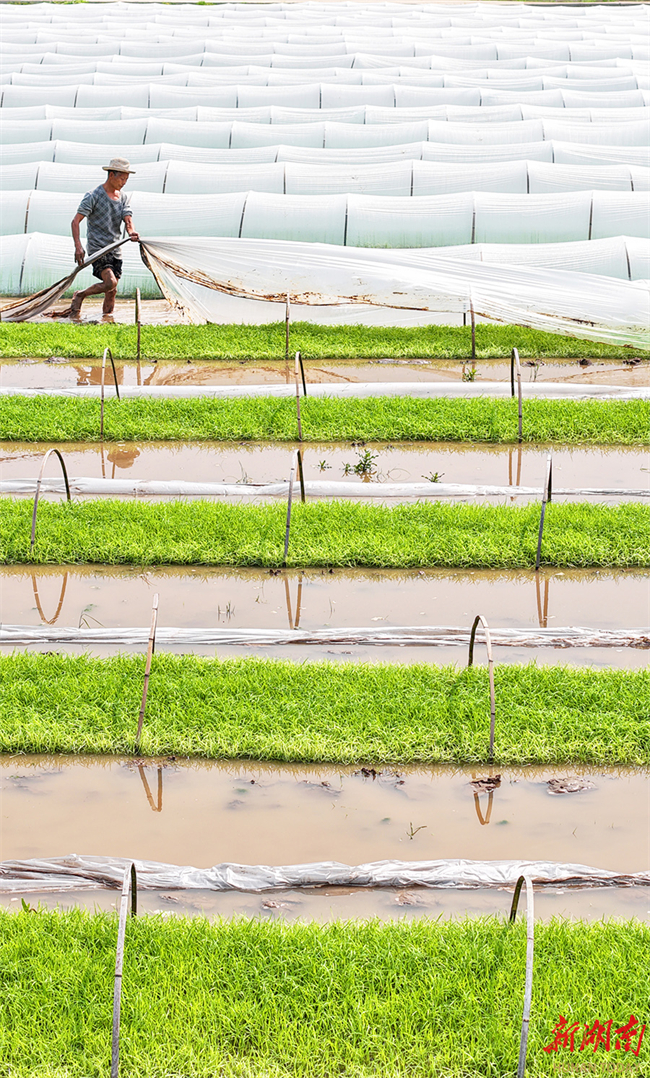 On April 5, a farmer uncovers the film covering early-season rice seedlings in Jinqiao Village, Qidong County. As the Qingming solar term has begun, local farmers are seizing the time to carry out spring ploughing, laying a foundation for a bumper harvest of crops. Qingming, or Pure Brightness, the fourth of the 24 solar terms on the Chinese lunar calendar, begins on April 5 this year. (Photo/Cao Zhengping and Zhou Ling)