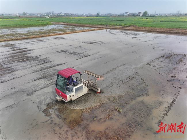 On April 5, farmers transplant early-season rice seedlings with an agricultural machine in Shaping Village, Sangesi Town, Longhui County. As the Qingming solar term has begun, local farmers are seizing the time to carry out spring ploughing, laying a foundation for a bumper harvest of crops. Qingming, or Pure Brightness, the fourth of the 24 solar terms on the Chinese lunar calendar, begins on April 5 this year. (Photo/Xu Shanhai)