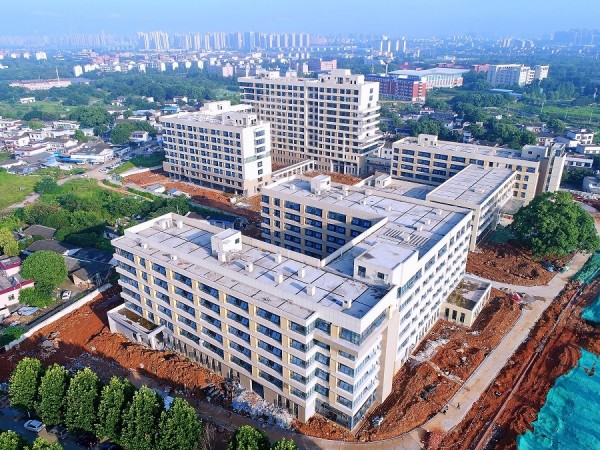 The aerial photo, taken on July 29, shows the Furong District Social Welfare Center at the Heping Road and Binhe Road intersection, Donghu Village, Furong District, Changsha. The main body of the center has been completed so far. The center is expected to be put into operation in November. It covers an area of 50 mu (3.33 ha.), with a total construction area of 62,000 square meters and more than 1,800 beds. (Photo/Xu Xing, Hunan Daily)